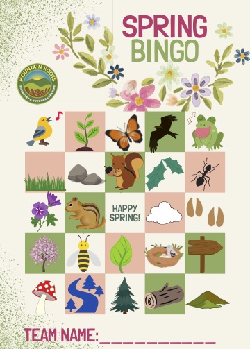 Keep an ear out for spring peeper frogs, singing their seasonal tunes; keep an eye out for a stream or river; you might find violets, flowering trees, new saplings, or soaring birds of prey. From the ground to the sky is fair game. Good job to whoever marks a line of squares first; GREAT job to whoever can check off all the boxes on the whole sheet! And happy spring!